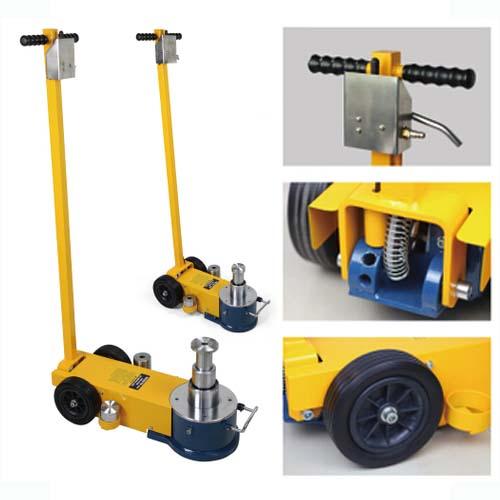 Maneuverability: tandem wheels on the air hydraulic jack makes easier to maneuver, with long handle load released.