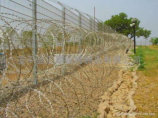 Specifications: | Standard mesh Aperture: 75*12.5mm Wire Diameter: 4mm Barbed Razor wire: 4mm