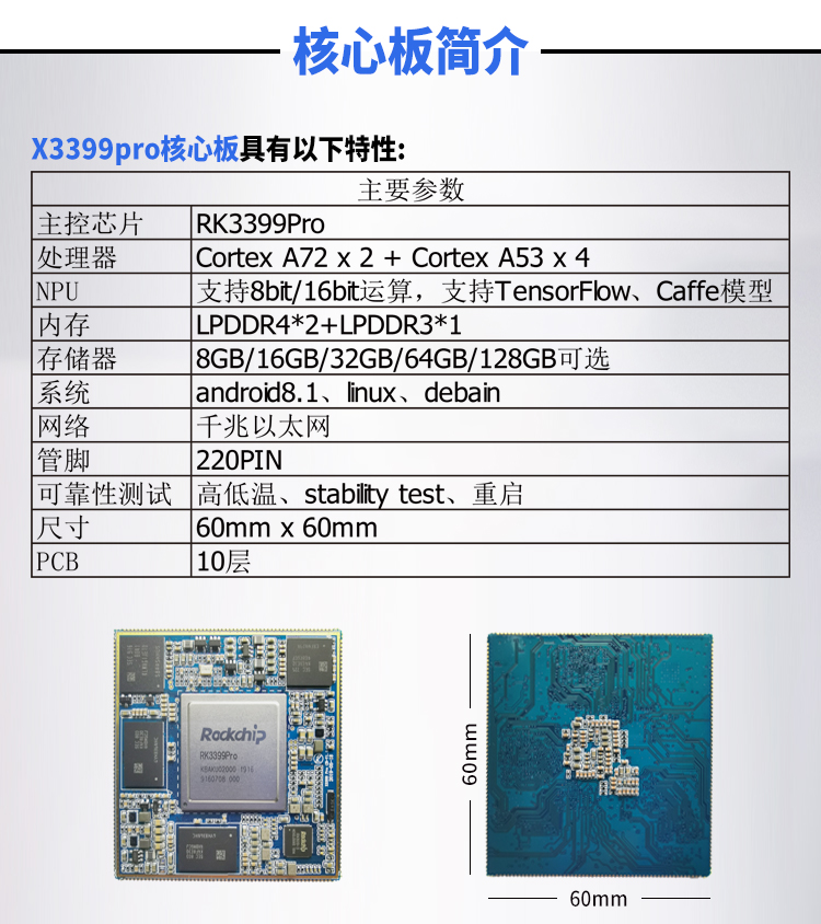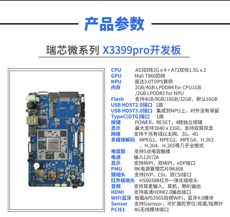 x3399pro 开发板上 x3399pro 核心板适用于 VR、工控,电力,通讯,医疗,媒体,安